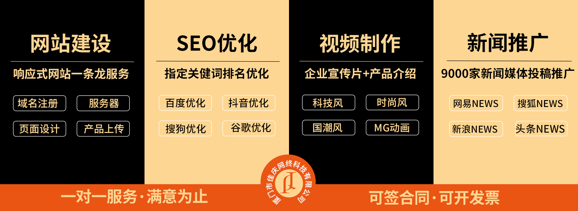 H5響應式網(wǎng)站搭建設計.外貿(mào)網(wǎng)站制多.站群推廣.百度谷歌SEO優(yōu)化推廣.媒體新聞投稿.小程序公眾號開發(fā).視頻宣傳片制作.企業(yè)郵箱滿足不同行業(yè)客戶的各種需求